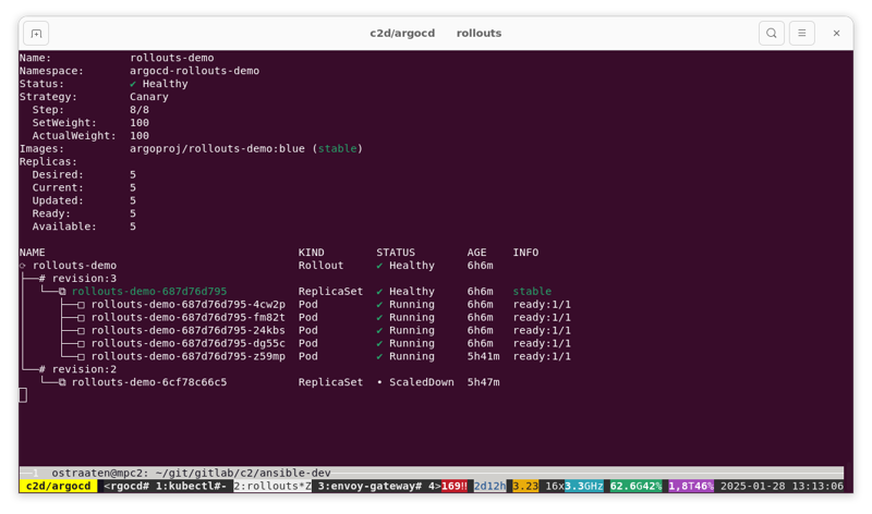 └──⧉ rollouts-demo-687d76d795 ReplicaSet ✔ Healthy 6h22m stable