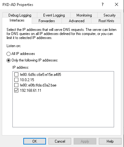 changed: [pxd-ad] => (item=DNS should only listen on 192.168.61.11)