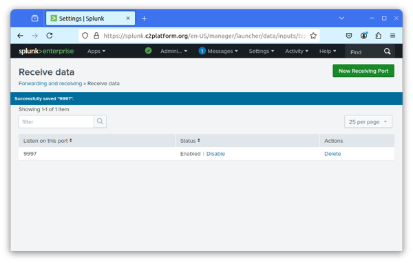 Use Splunk Web to configure Splunk to receive data on port 9997. Navigate to